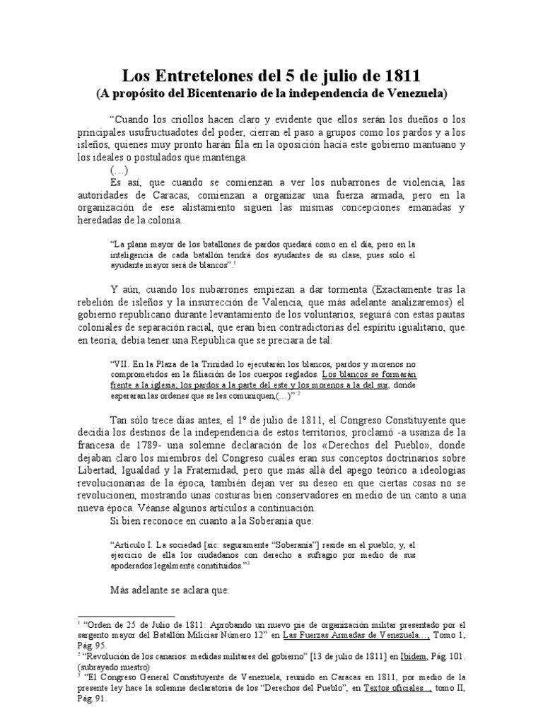 30 De Julio De 1811 / Los Entretelones Del 5 de Julio de 1811 | Venezuela | España - Fue elaborada por juan germán roscio y francisco isnardi, ratificada por el congreso el 7 de julio de 1811, y pasada al libro de actas el 17 de agosto de 1811, en caracas.